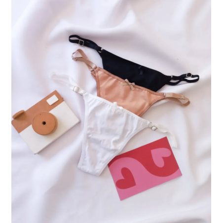 Pack x 3. Cola less regulable de algodón y lycra lisa.